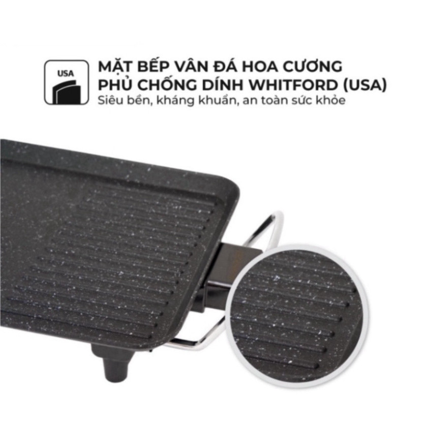 Bếp nướng điện không khói Sunhouse SHD4607 công suất 1500w 6 mức nhiệt, mặt tráng men chống dính, bảo hành 12 tháng