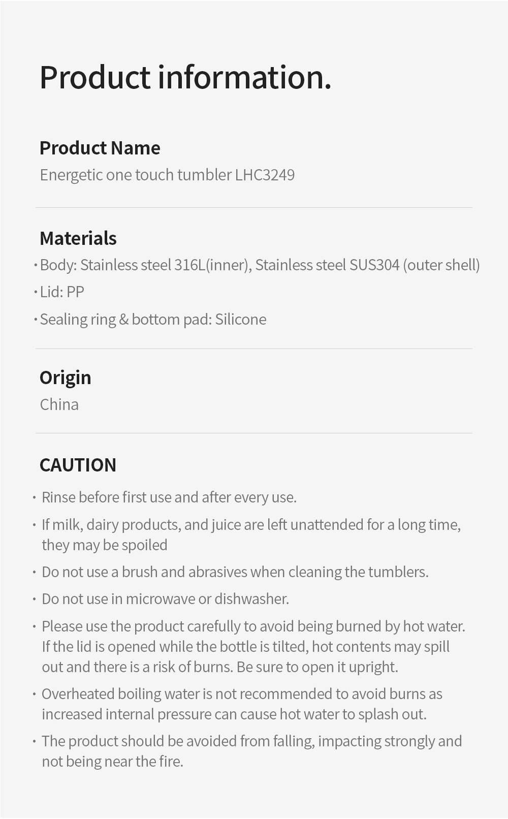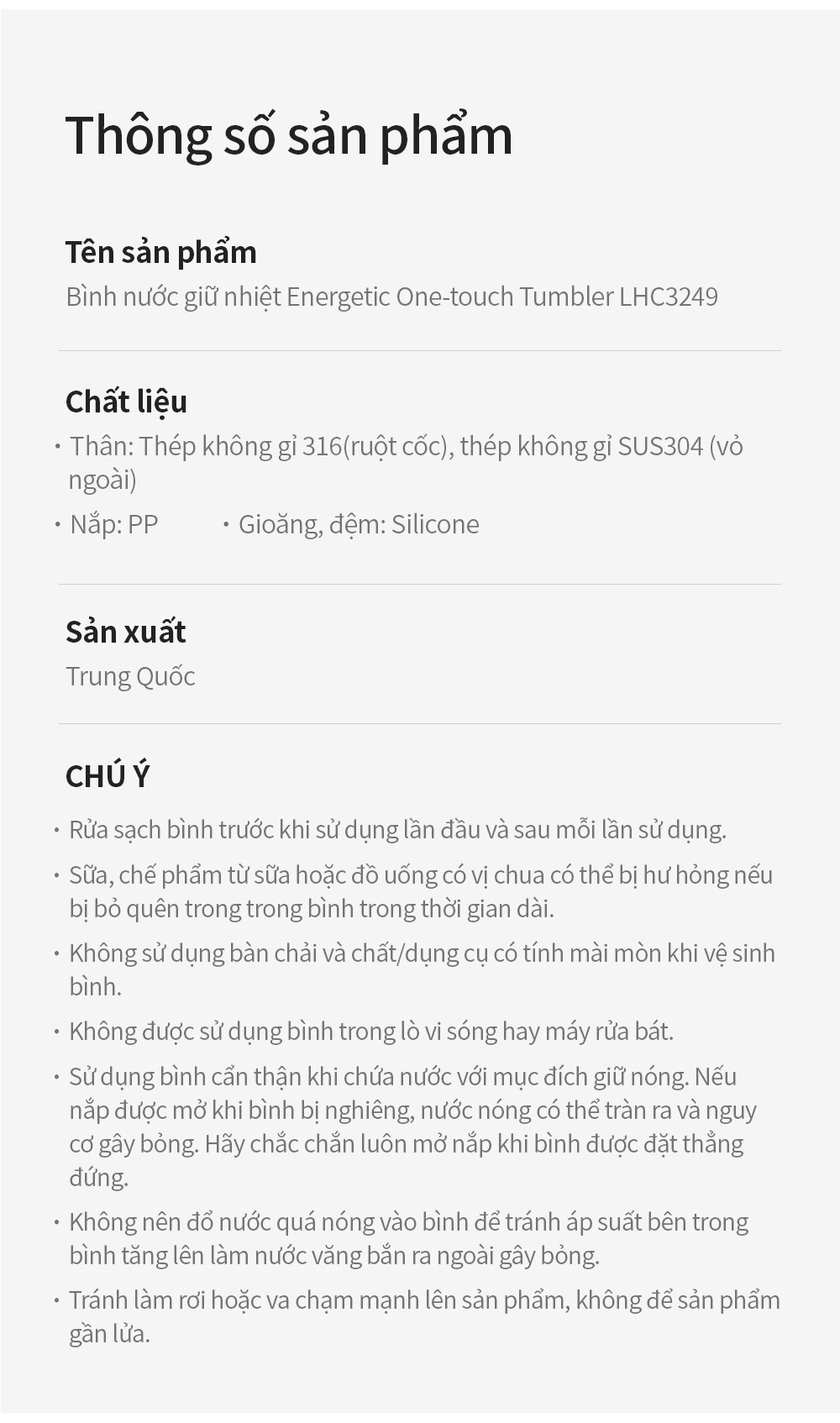 – Không sử dụng sản phẩm để đựng sữa (thức ăn trẻ em), đá khô và đồ uống có gas