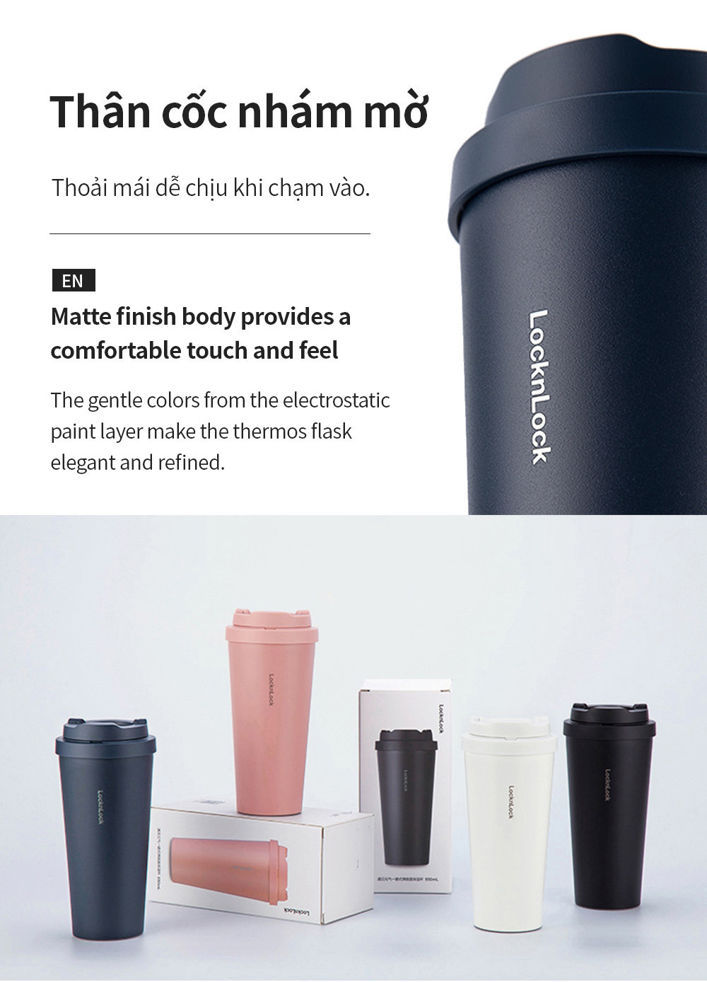 – Thân cốc nhám mờ: thoải mái dễ chịu khi chạm vào