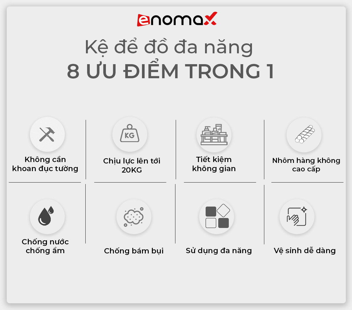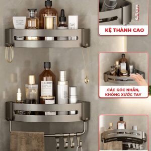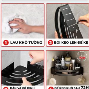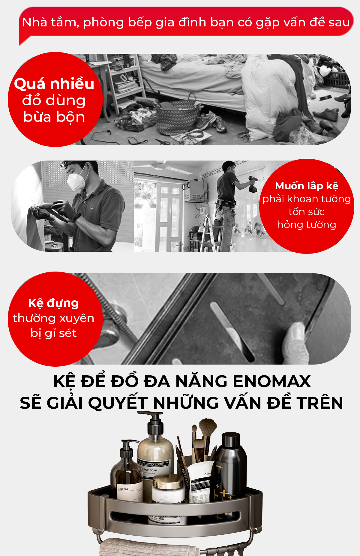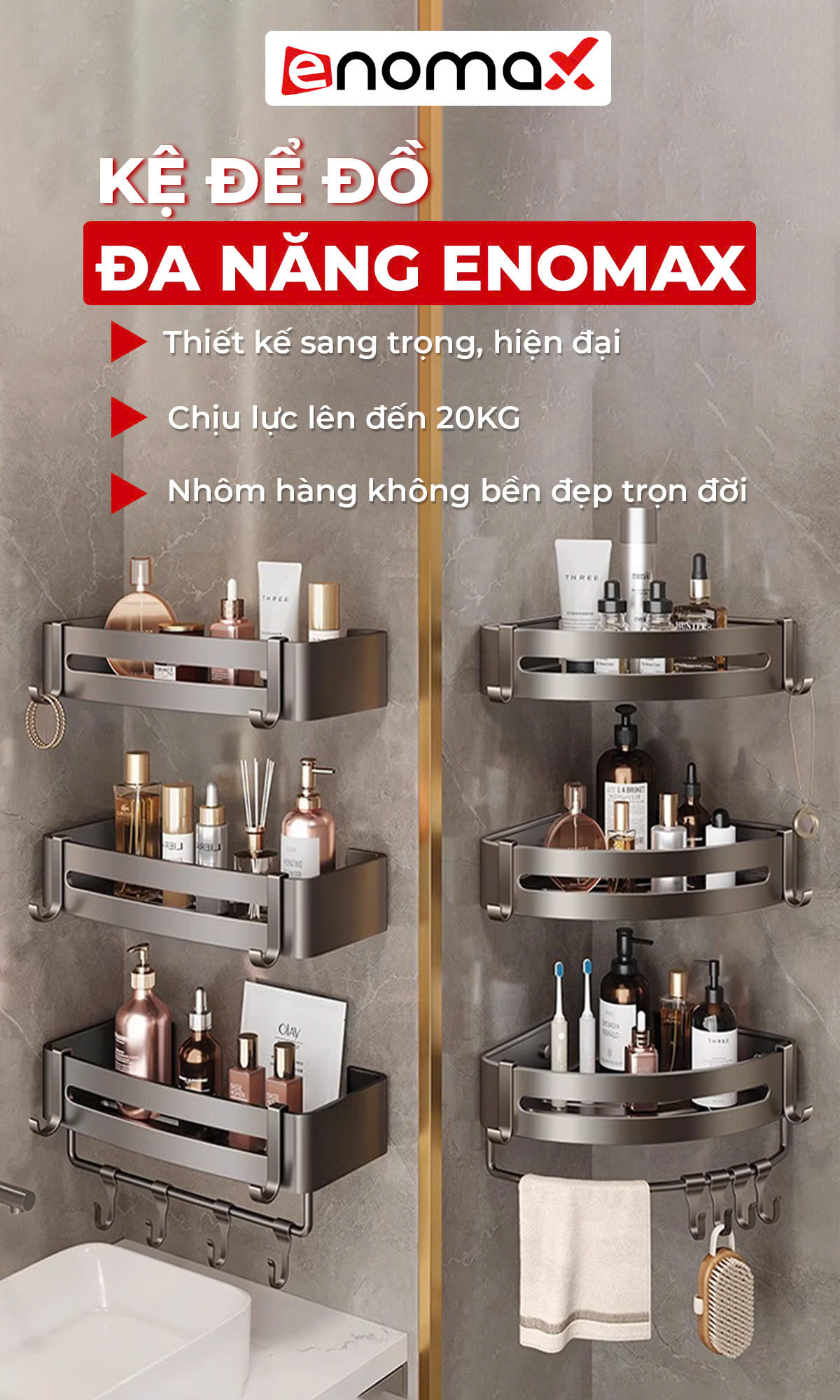 Kệ góc nhà tắm Enomax dán tường bằng keo hoặc ốc vít
