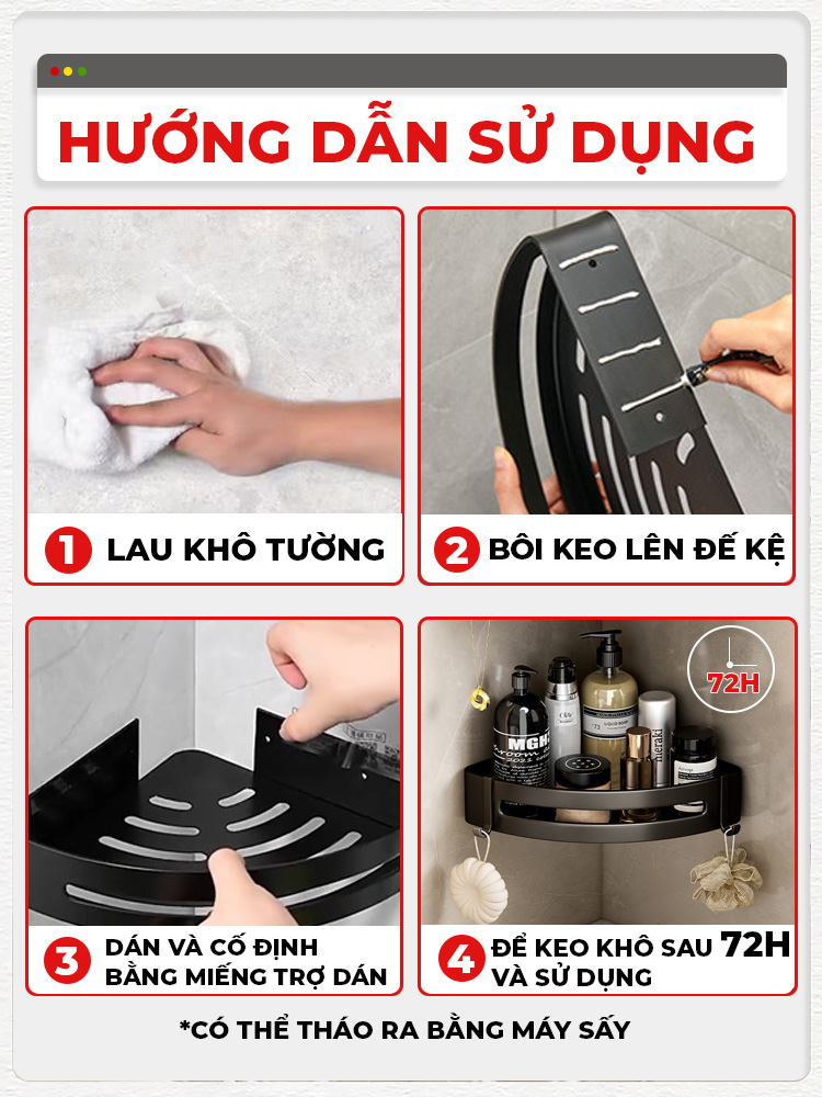 Hãy là người đầu tiên nhận xét “Kệ góc nhà tắm Enomax dán tường bằng keo hoặc ốc vít” Hủy