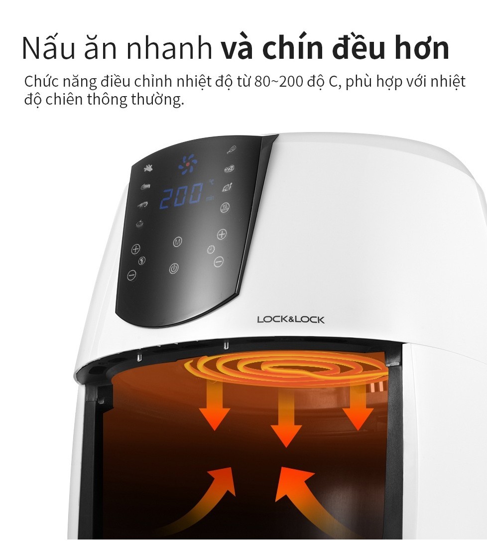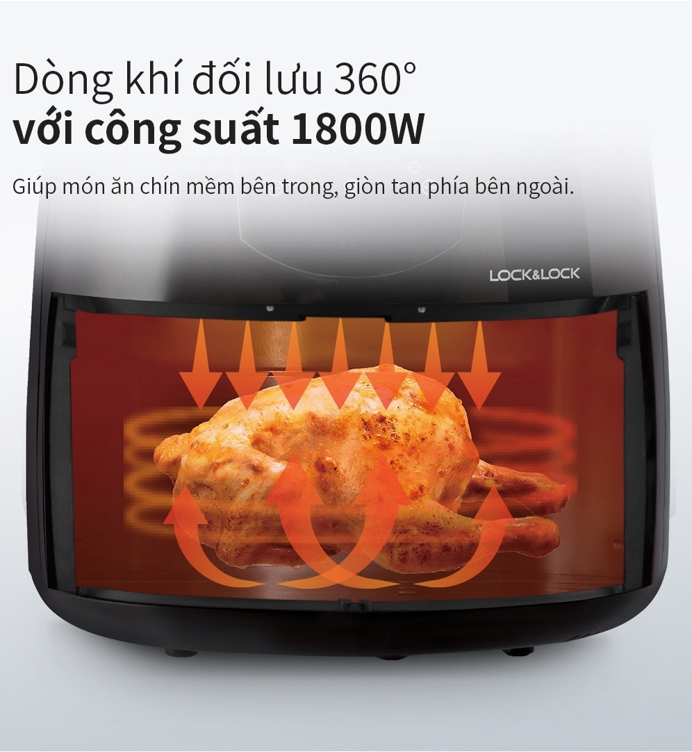 Nồi Chiên Không Dầu Lock&Lock Jumbo Plus irFryer 5.2L Màu-en EJF357BLK 8 menu sẵn, giảm chất béo, giữ ấm