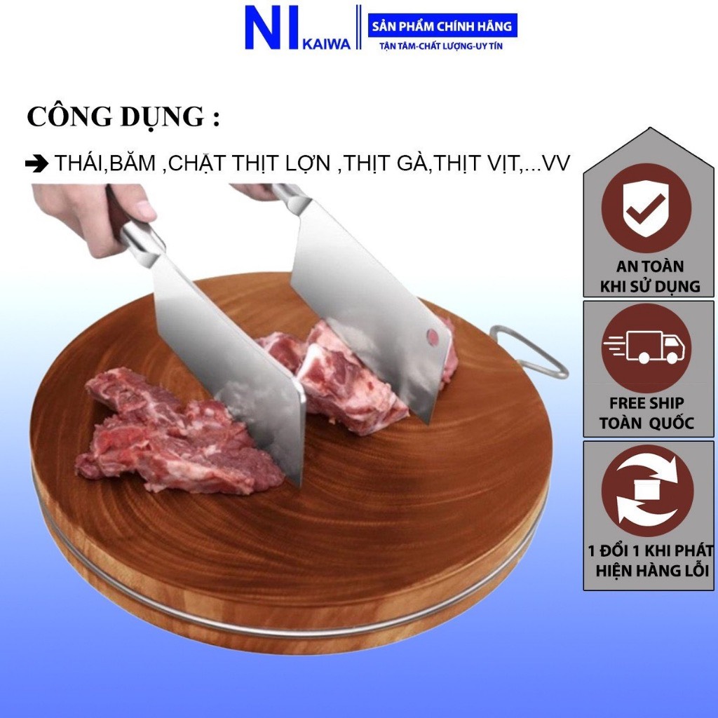 Thớt gỗ nghiến có đai inox kháng khuẩn Nikaiwa